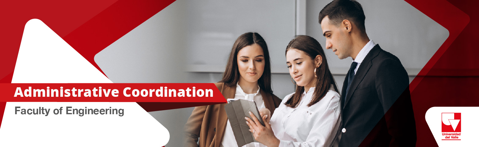 The main characteristic of the Administrative Coordination of the Faculty of Engineering at Universidad del Valle is the area in charge of supporting the Dean's Office and the Schools in providing information and controlling administrative procedures and decision making of the Faculty such as: Financial Management, Human Resources and Administration of Goods and Services. The unit provides a series of formats, guides and tools to facilitate and optimize administrative and financial processes.